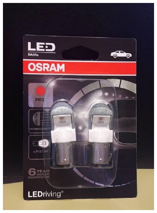 Отзывы на Автолампа OSRAM P21W BA15S LED RED 2шт 12V, 1, 10, 50 7556R-02B