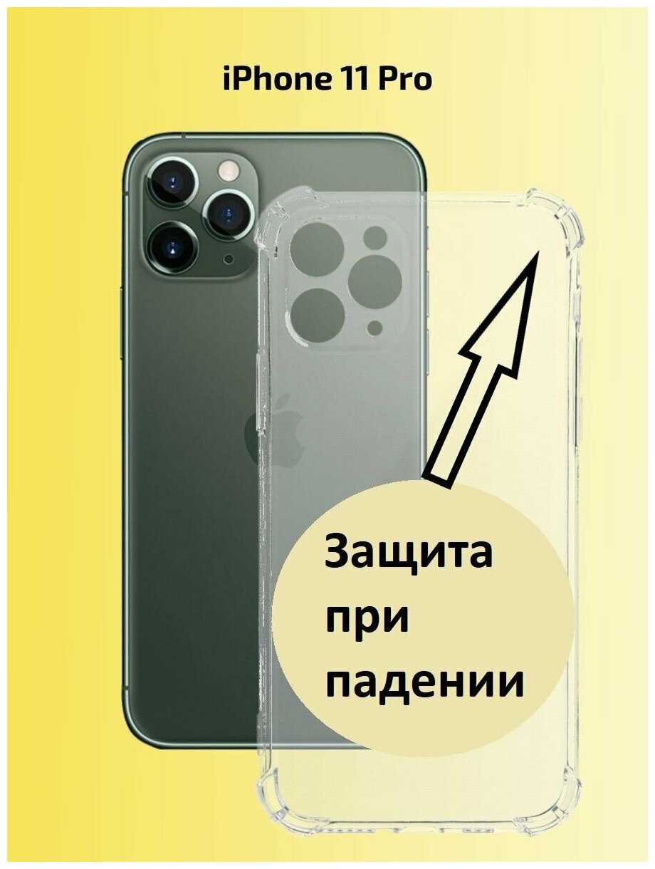 Чехол для iPhone 11 Pro / Противоударный, силиконовый, с защитой камеры case на 11 Pro, прозрачный информация: