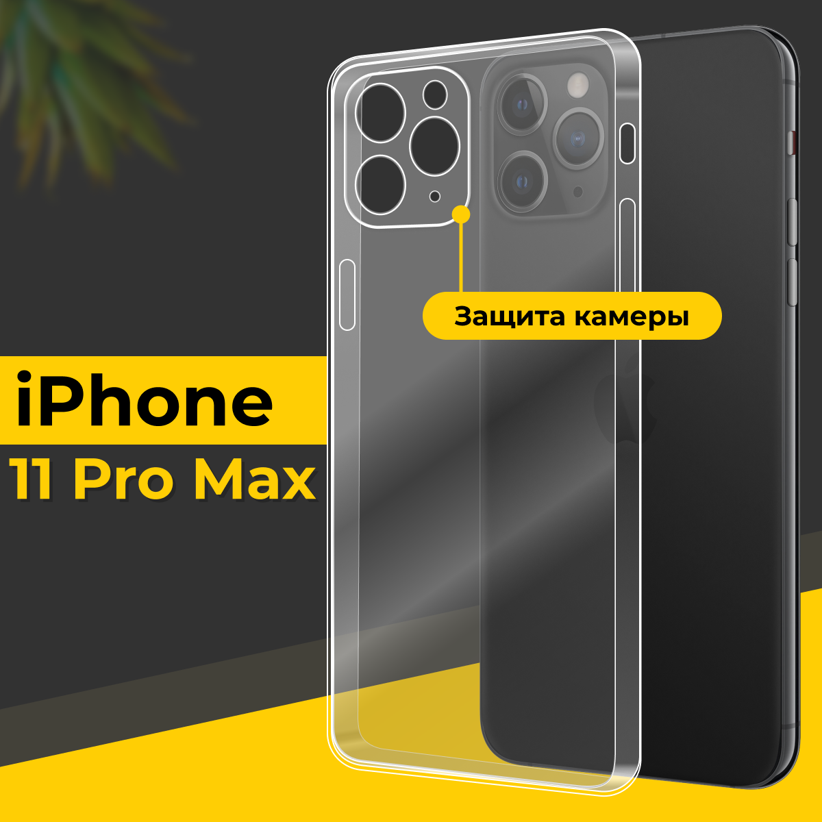 Тонкий силиконовый чехол для смартфона Apple iPhone 11 Pro Max / Противоударный чехол для телефона Эпл Айфон 11 Про Макс с защитой камеры / Прозрачный информация: