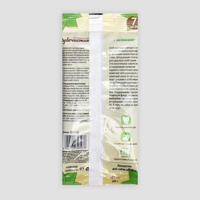 Лакомство для собак Зубочистики Мятные для мелких пород, 60 гр информация: