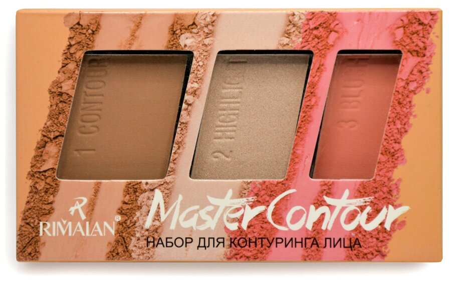 Rimalan Набор для контуринга лица Master Contour (палетка: контур + хайлайтер + румяна), MC50, набор 01, 9.6 г