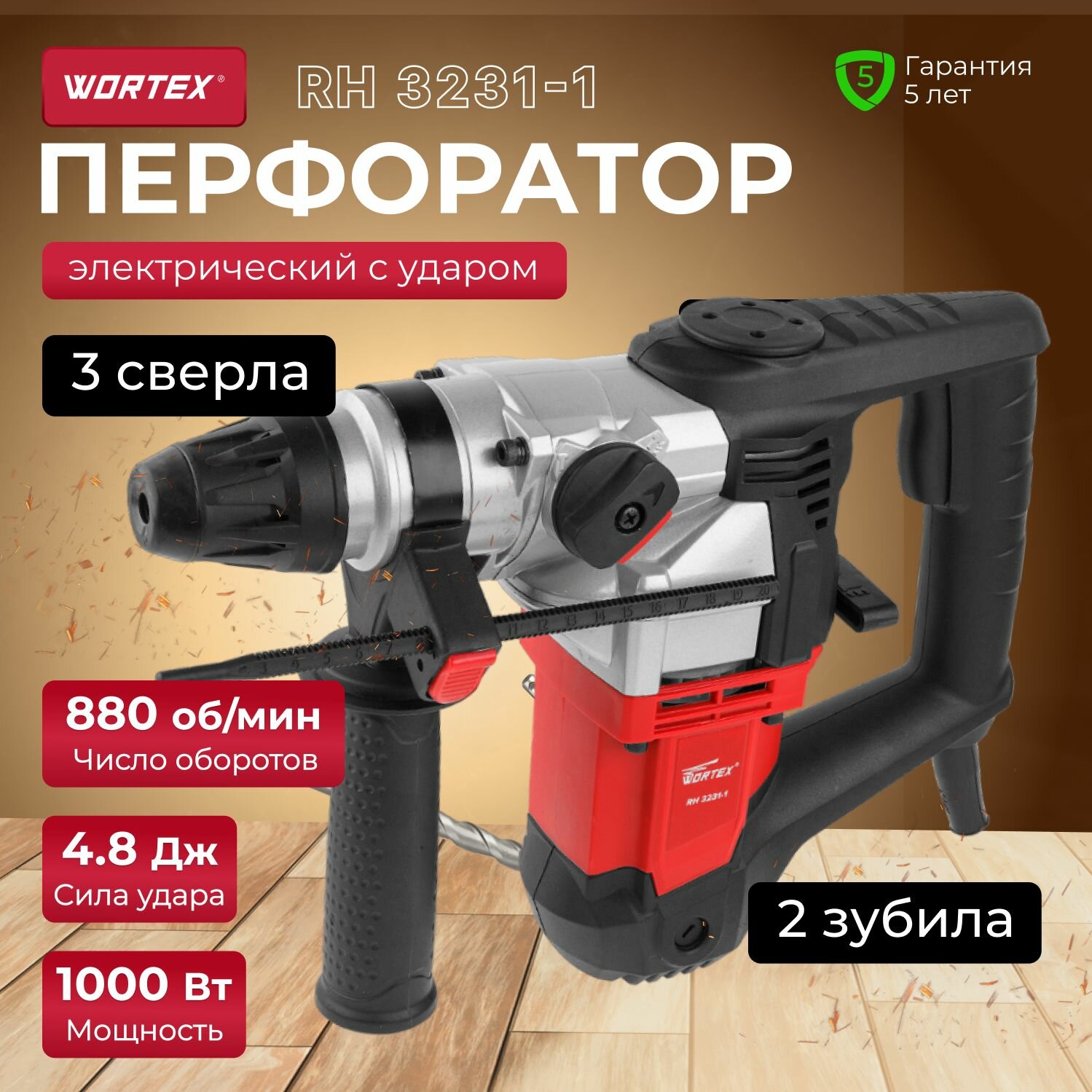 Перфоратор WORTEX RH 3231-1 в чем. + (2 зубила, 3 сверла)