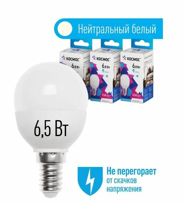 10 цен на Лампа LED 6.5W E14 4500 шар Космос