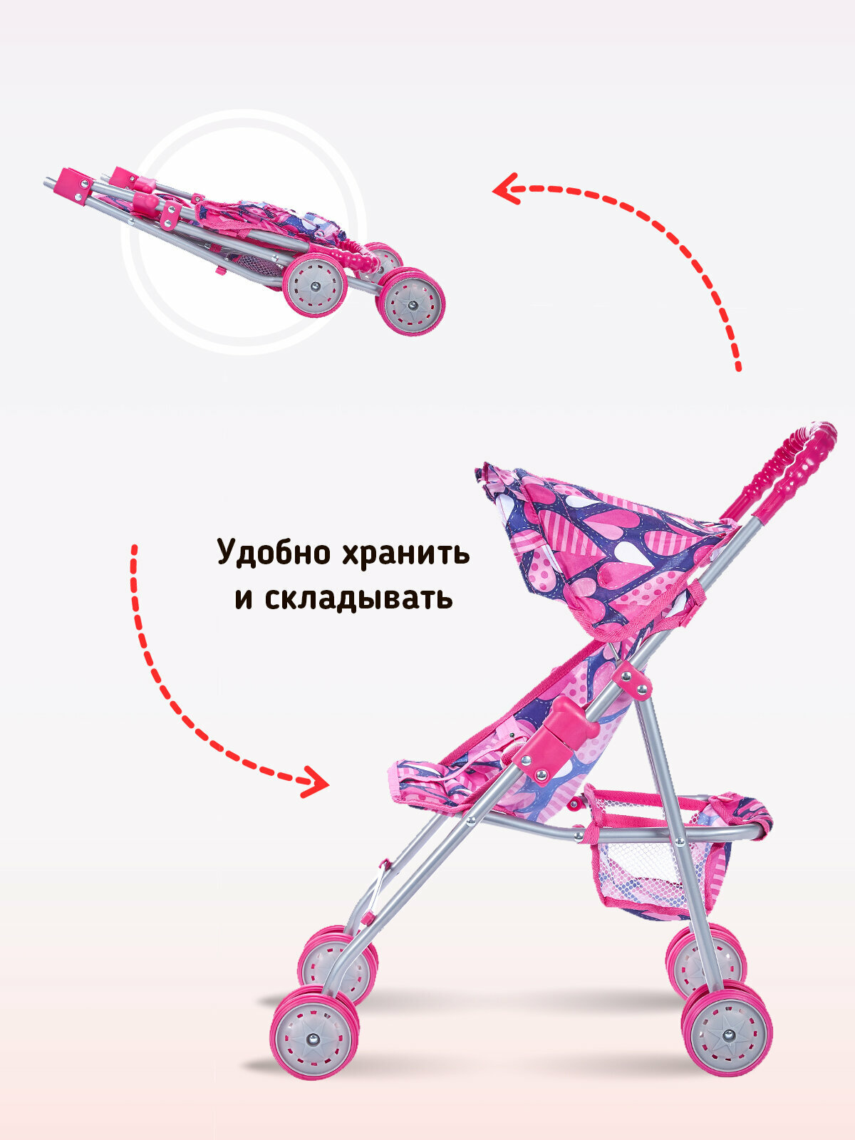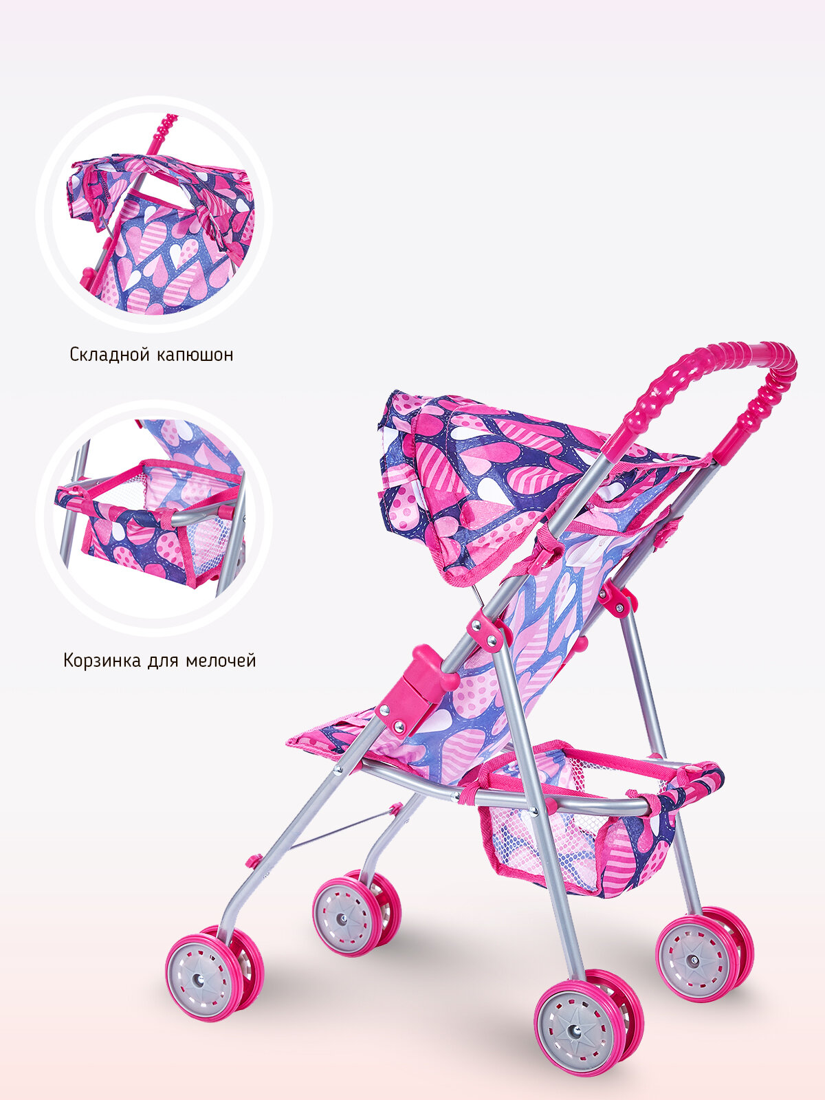 Детская игрушечная прогулочная коляска-трость Buggy Boom для кукол Mixy 8006 с козырьком и корзиной информация:
