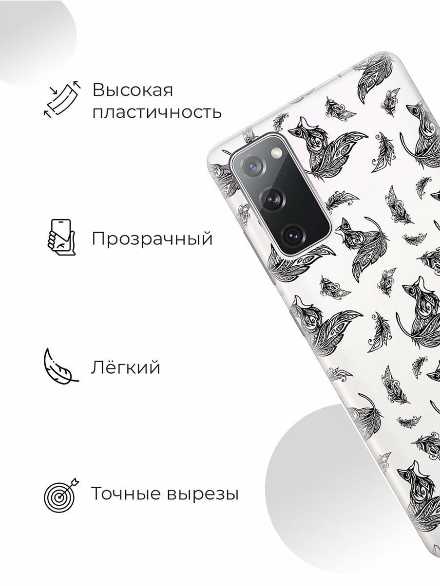 RE:PA Cиликоновый прозрачный чехол - накладка Transparent для Samsung Galaxy S20 FE с 3D принтом "Foxes and feathers" информация: