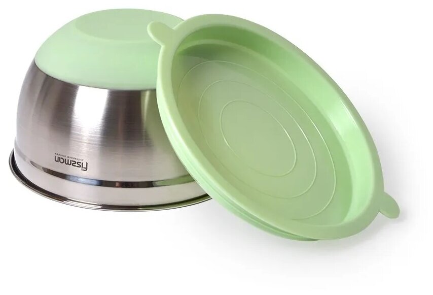 5113 FISSMAN Миска 3л; 20x12см с крышкой, цвет Зеленый чай (нерж.сталь) Крышка - пластик; Дно с силиконовым основанием.
