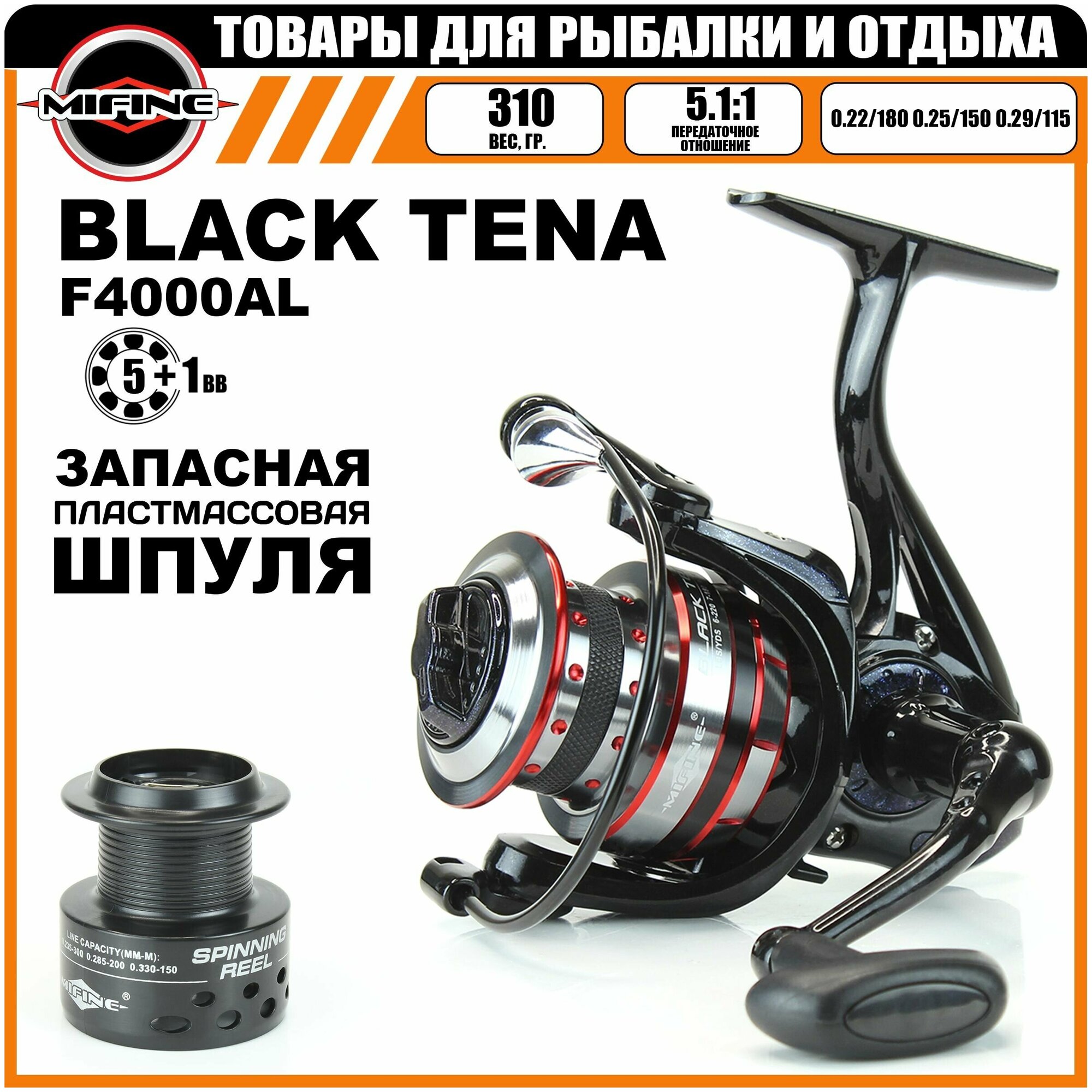 Катушка рыболовная с металлической шпулей MIFINE BLACK TENA 4000F, 5+1 подшипник, для рыбалки, для спиннинга, для джига информация: