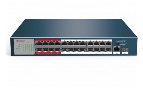 Коммутатор HiWatch DS-S2624P(B) 24x100Mb 1G 1SFP 24PoE+ 230W неуправляемый информация: