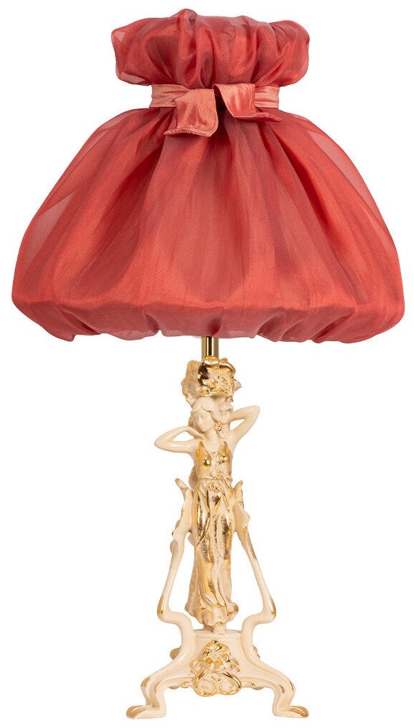Настольная лампа BOGACHO Флора бежевая с красным абажуром Мадлен информация: