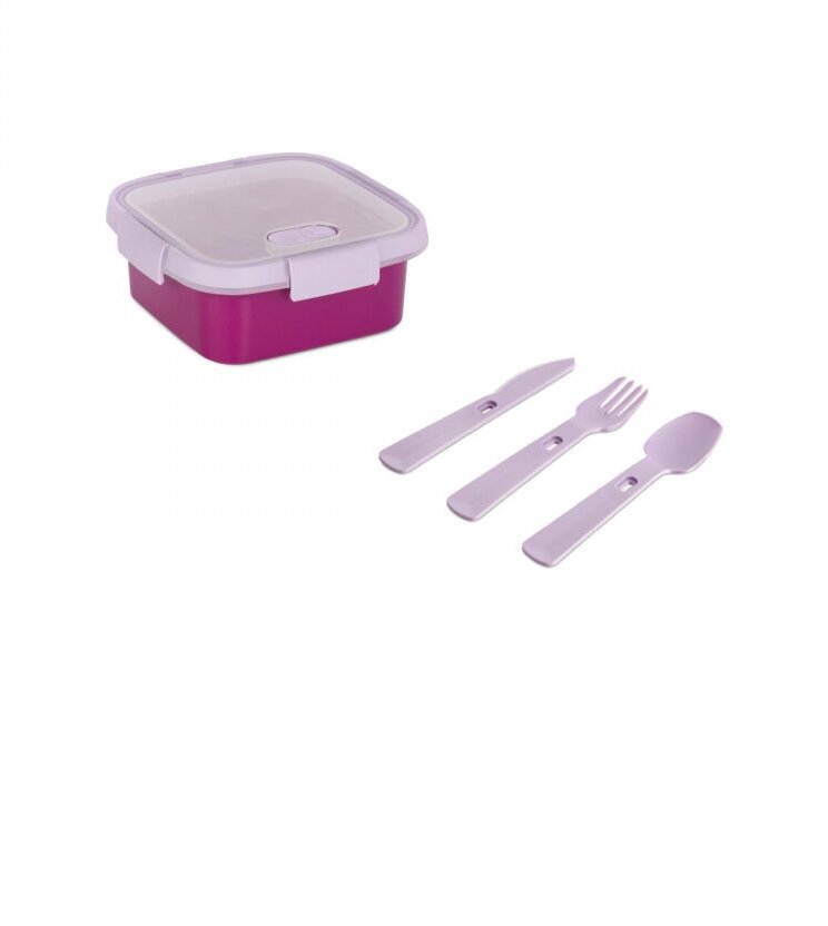 Отзывы на Контейнер пищевой TO GO квадратный с приборами 0.9л фиолетовый CURVER