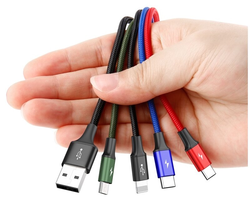 Отзывы на Кабель Baseus 4 in 1 Rapid Series USB - microUSB/Lightning/2xUSB Type-C (CA1T4-B01), 1.2 м, черный
