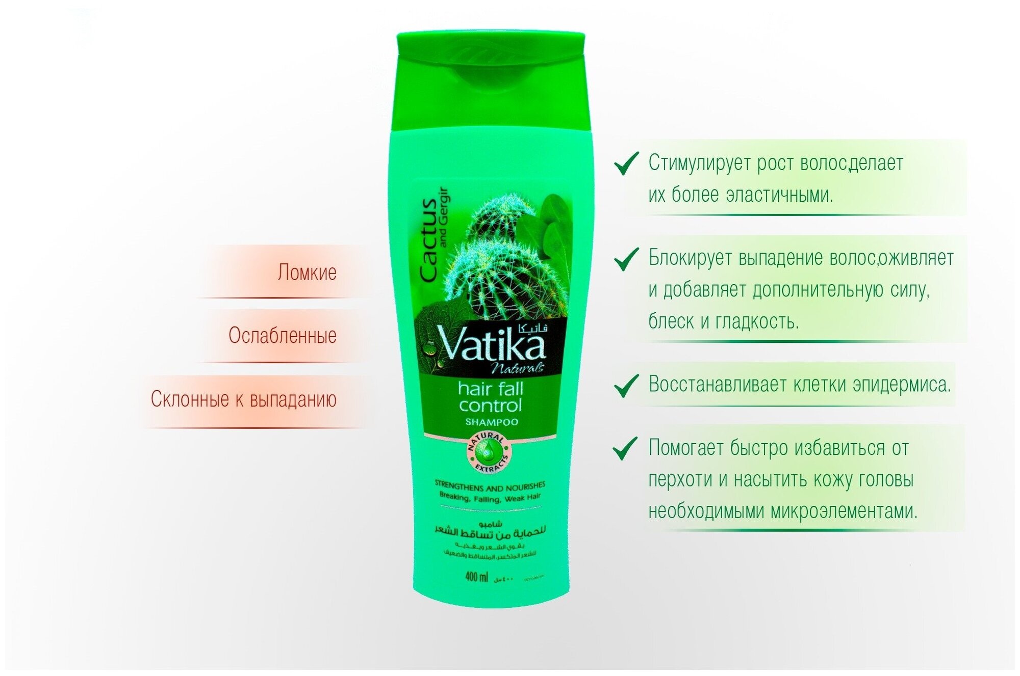 Vatika шампунь Cactus & Gergir Hair fall control, 400 мл +33%