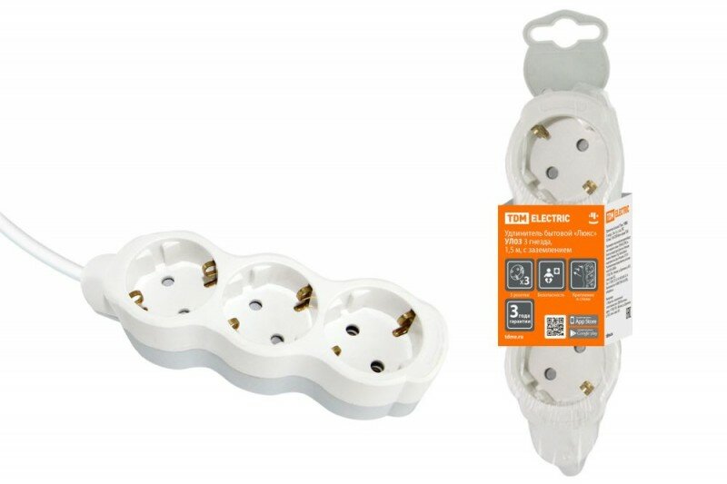 Отзывы на Tdm Удлинитель бытовой "Люкс" УЛ03 3 гнезда, ПВС 3х1мм2 16А/250В SQ1303-0234