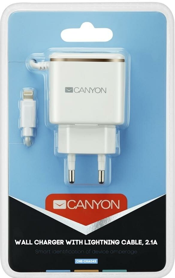Сетевое зарядное устройство Canyon CNE-CHA043WR, USB, 8-pin Lightning (Apple), 2.1A, белый/золотистый 510 ₽