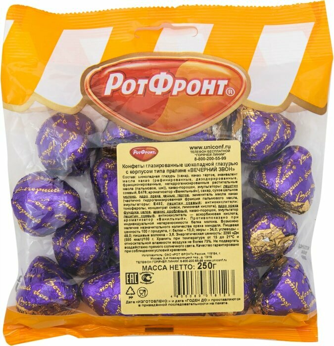 Конфеты Рот Фронт Вечерний звон, пакет, 250 г информация: