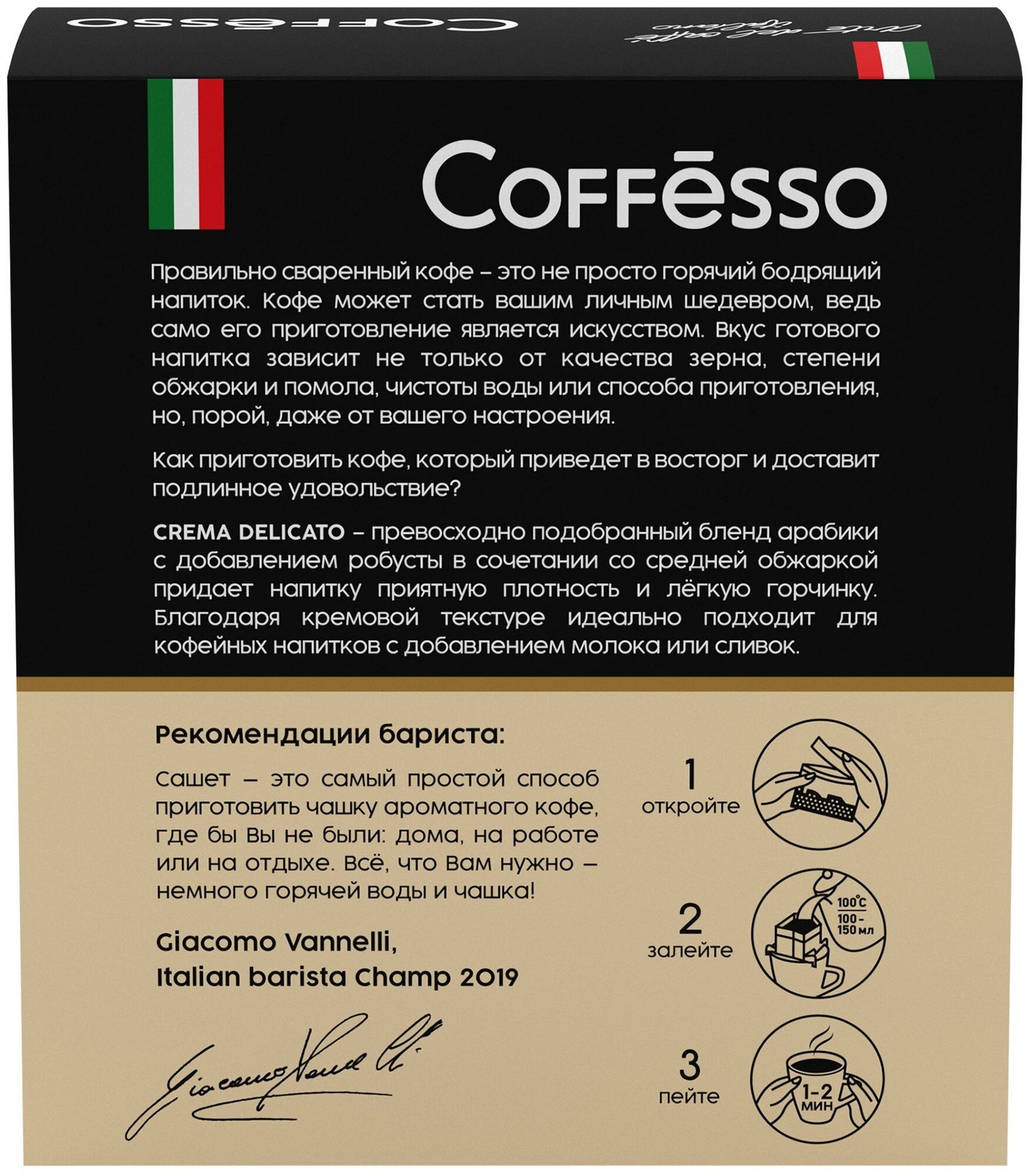 Молотый кофе Coffesso Crema Delicato, в дрип-пакетах, 5 уп., 45 г