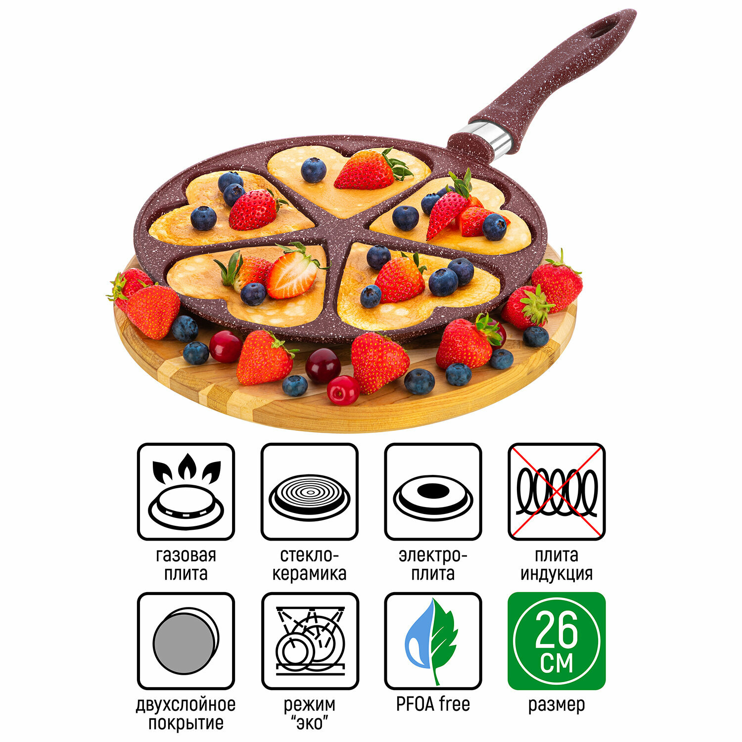 Сковорода для оладий 26 см Elan Gallery гармония вкуса Рубин сердце, несъёмная ручка информация: