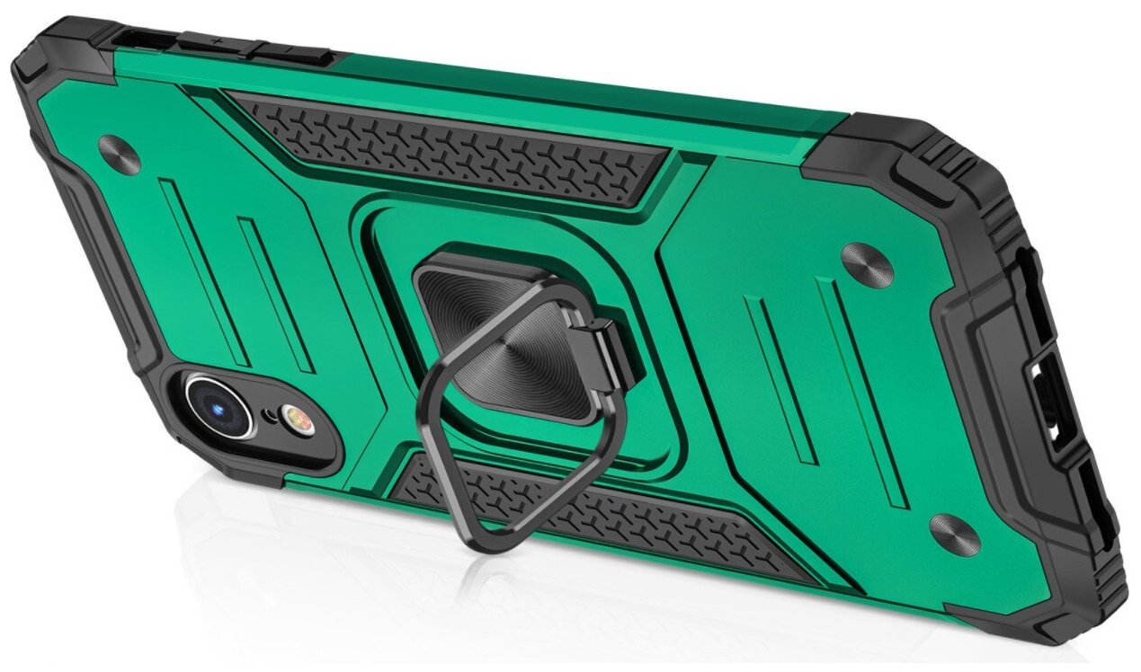Противоударный чехол для iPhone XR зеленый с пластиной для магнитного автодержателя и кольцом подставкой информация: