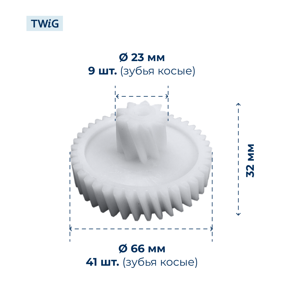 Шестерёнка средняя для мясорубок Zelmer, BOSCH, Kambrook, Binatone и др. Д-66/22мм, зубья косые-41/9шт.