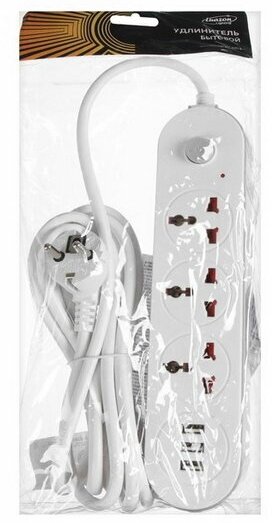 10 цен на Удлинитель 3 розетки, 3 м, 10 А, 2200 Вт, 2х0.75 мм2, 3хUSB, с выкл., Б