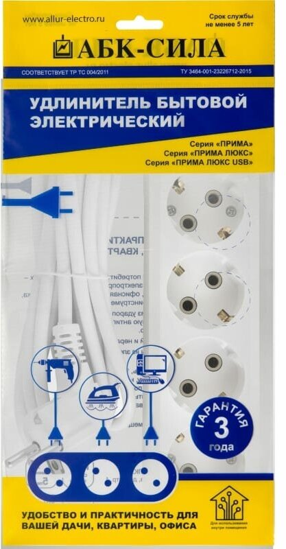 Отзывы на Удлинитель бытовой, сетевой фильтр абк-сила, 4 гнезда, с заземлением и выключателем, 3м, ПВС 3х1мм кв. 16А/220В
