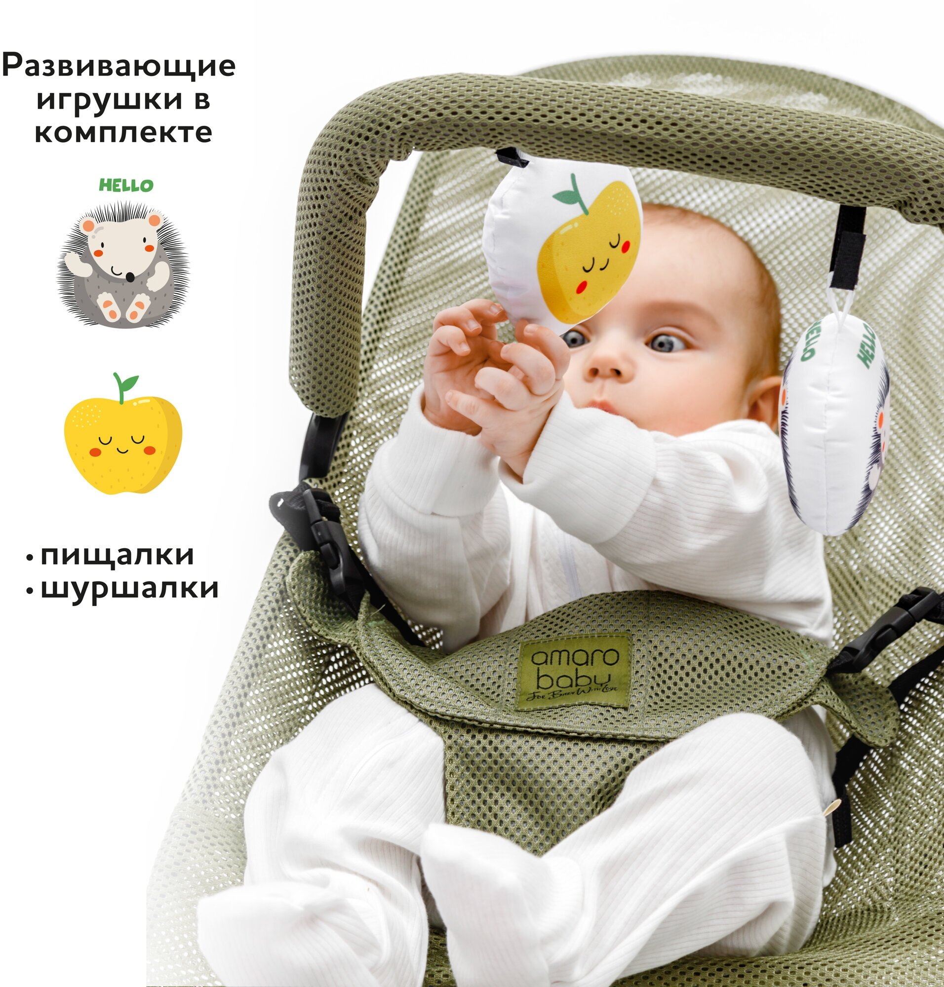 Детский шезлонг Amarobaby, Baby time, зеленый информация: