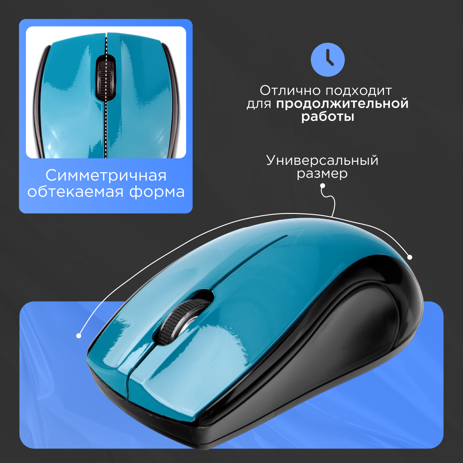 Мышь беспроводная Gembird MUSW-320-B, 2.4ГГц, голубой, 2 кнопки+колесо-кнопка, 1000 DPI, батарейки в комплекте, блистер 850 ₽