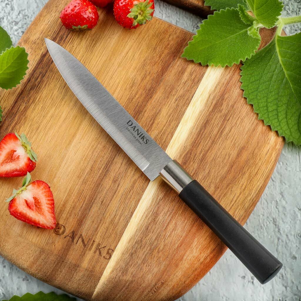 Отзывы на Нож кухонный Daniks, Скара, универсальный, нержавеющая сталь, 12.5 см, рукоятка пластик, YW-A341-UT