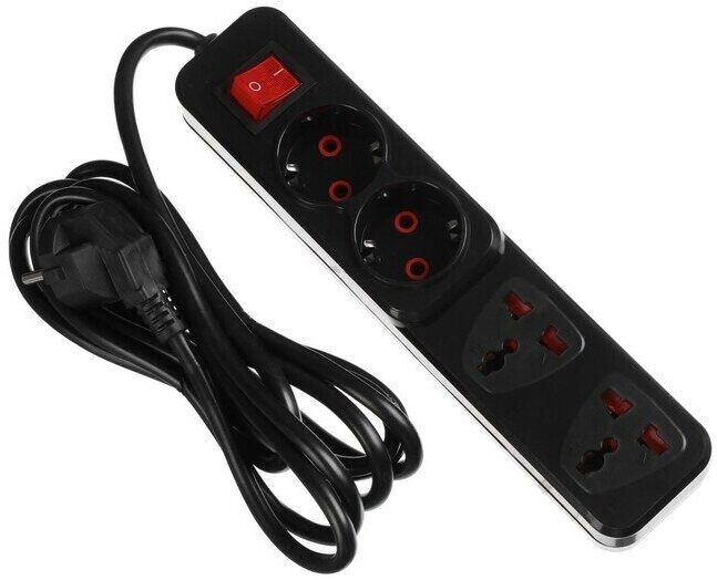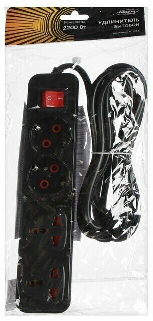 Отзывы на Удлинитель Luazon Lighting, 2 евро+2 унив.роз., 3 м, 2200 Вт, 2х0.5 мм2, с выкл.,черный