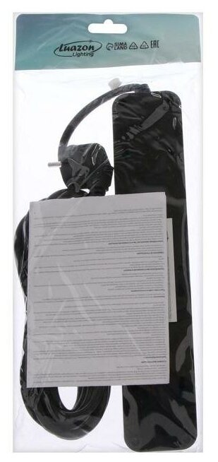 Удлинитель Lighting, 2 евро+2 унив.роз., 3 м, 2200 Вт, 2х0.5 мм2, с выкл.,черный информация: