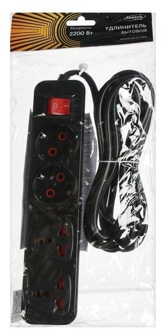 10 цен на Удлинитель Lighting, 2 евро+2 унив.роз., 3 м, 2200 Вт, 2х0.5 мм2, с выкл.,черный