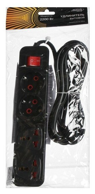 Отзывы на Удлинитель Luazon Lighting, 2 евро+2 унив.роз., 3 м, 2200 Вт, 2х0.5 мм2, с выкл.,черный./В упаковке шт: 1