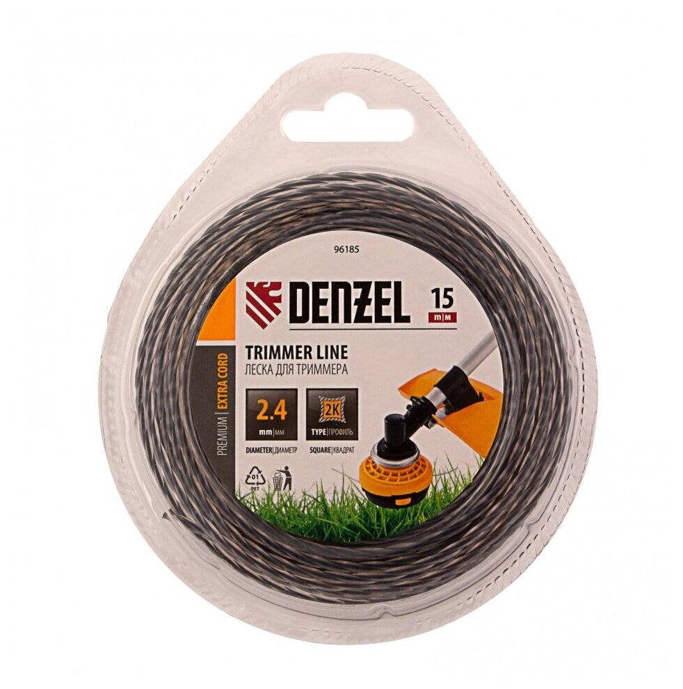 DENZEL Леска двухкомпонентная для триммера квадратная витая, 2,4 мм х 15 м, EXTRA CORD Denzel, ( 96185 )