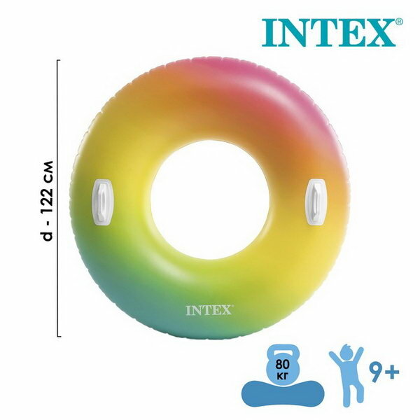 Надувной круг для плавания с ручками Rainbow Ombre, 122 см, INTEX (от 9 лет) (58202EU) (58202EU)