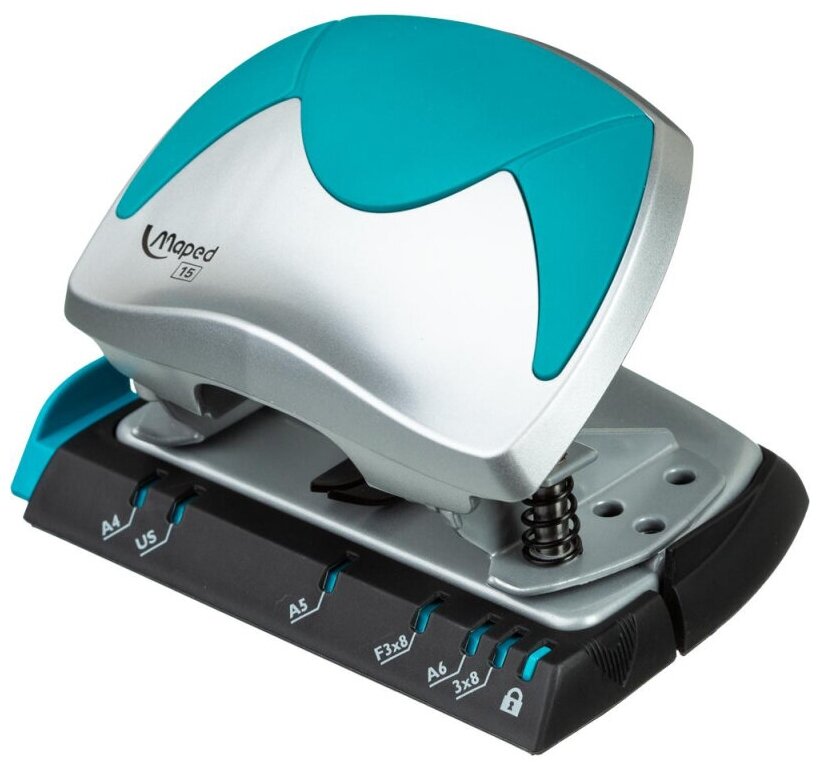 Отзывы на Дырокол Maped 421512 до 20 листов серебристый/бирюзовый с линейкой