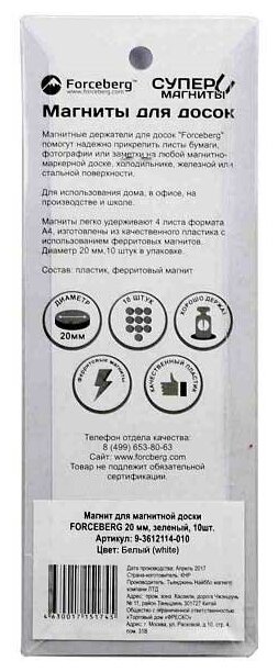 Магнит для магнитной доски FORCEBERG 20 мм белый 10шт. информация: