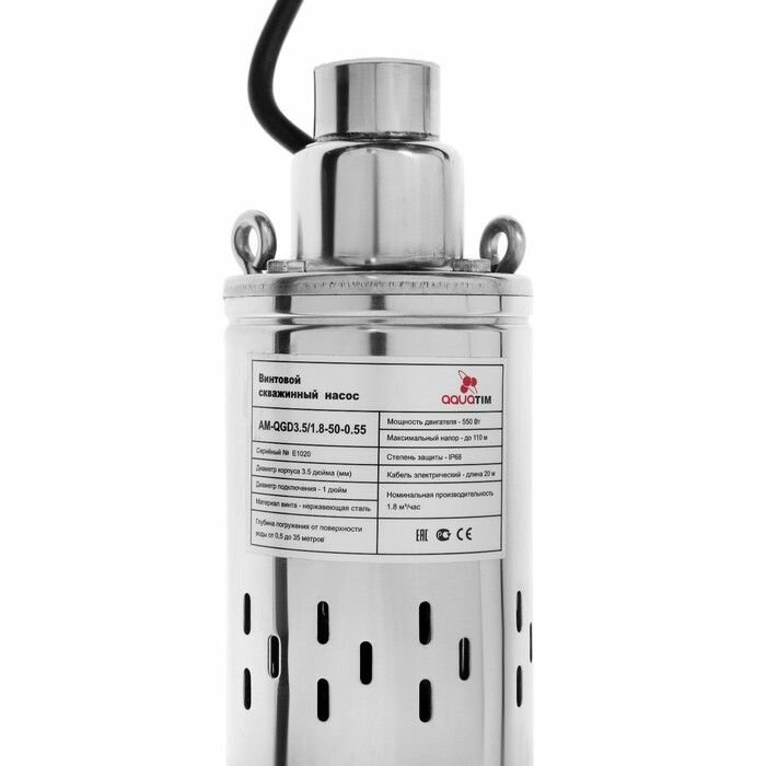 Насос скважинный TIM AM-QGD3.5/1.8-50-0.55, винтовой, 550Вт, напор 50м, 58 л/мин, кабель 20м информация: