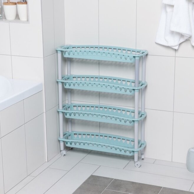 Этажерка на колесах Бытпласт Джулия, 4 полки, 590 x 180 x 730 мм, светло-голубая 1 206 ₽