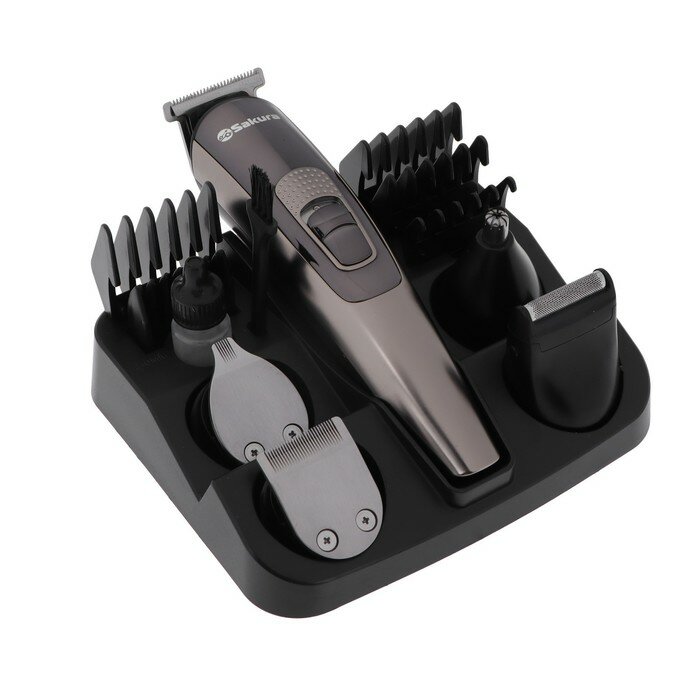 10 цен на SAKURA Триммер Sakura SA-5531BK, для бороды/усов/головы, 3-12 мм, 9 насадок, АКБ, чёрный