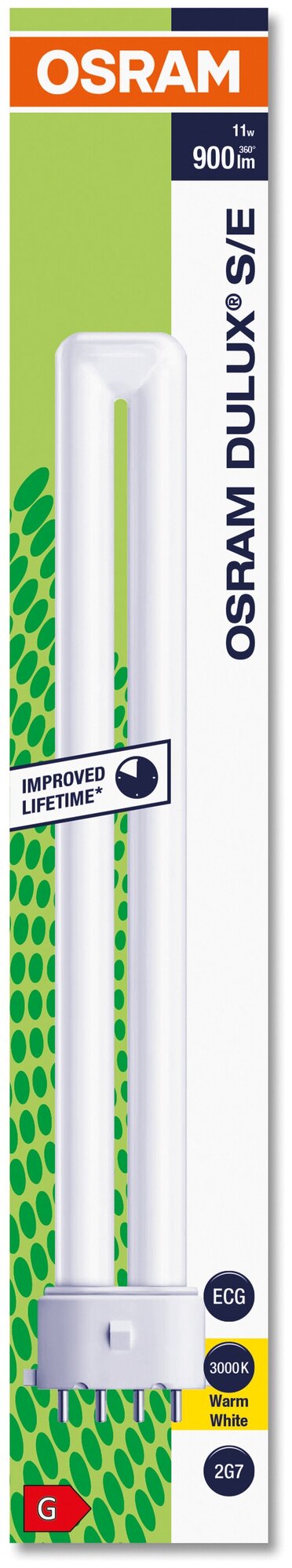 Лампа люминесцентная Osram DULUX S/E 11W/31-830 2G7 тёплый белый, упаковка 5шт информация:
