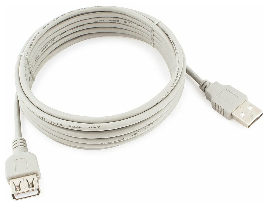 Кабель удлинитель USB 2.0 Pro, AM/AF, 3 м, серый, Gembird информация: