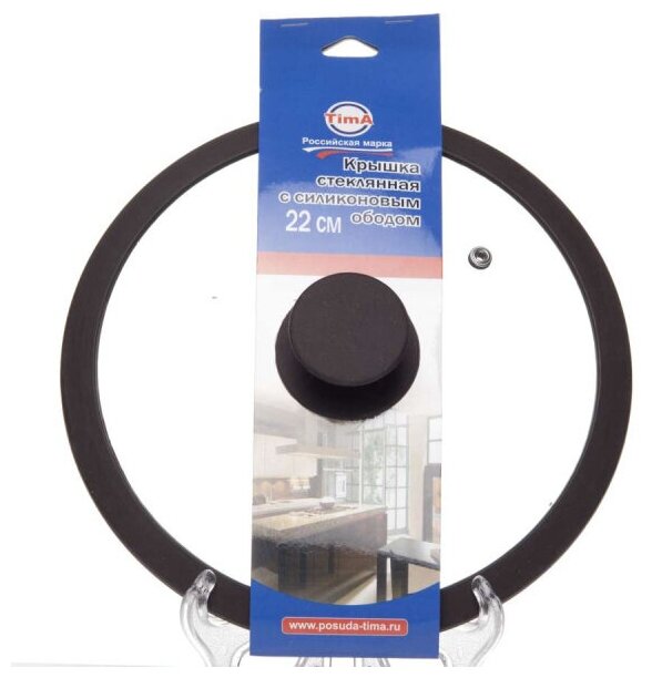 Крышка стеклянная с силиконовым ободом TimA 4822BR 22 см