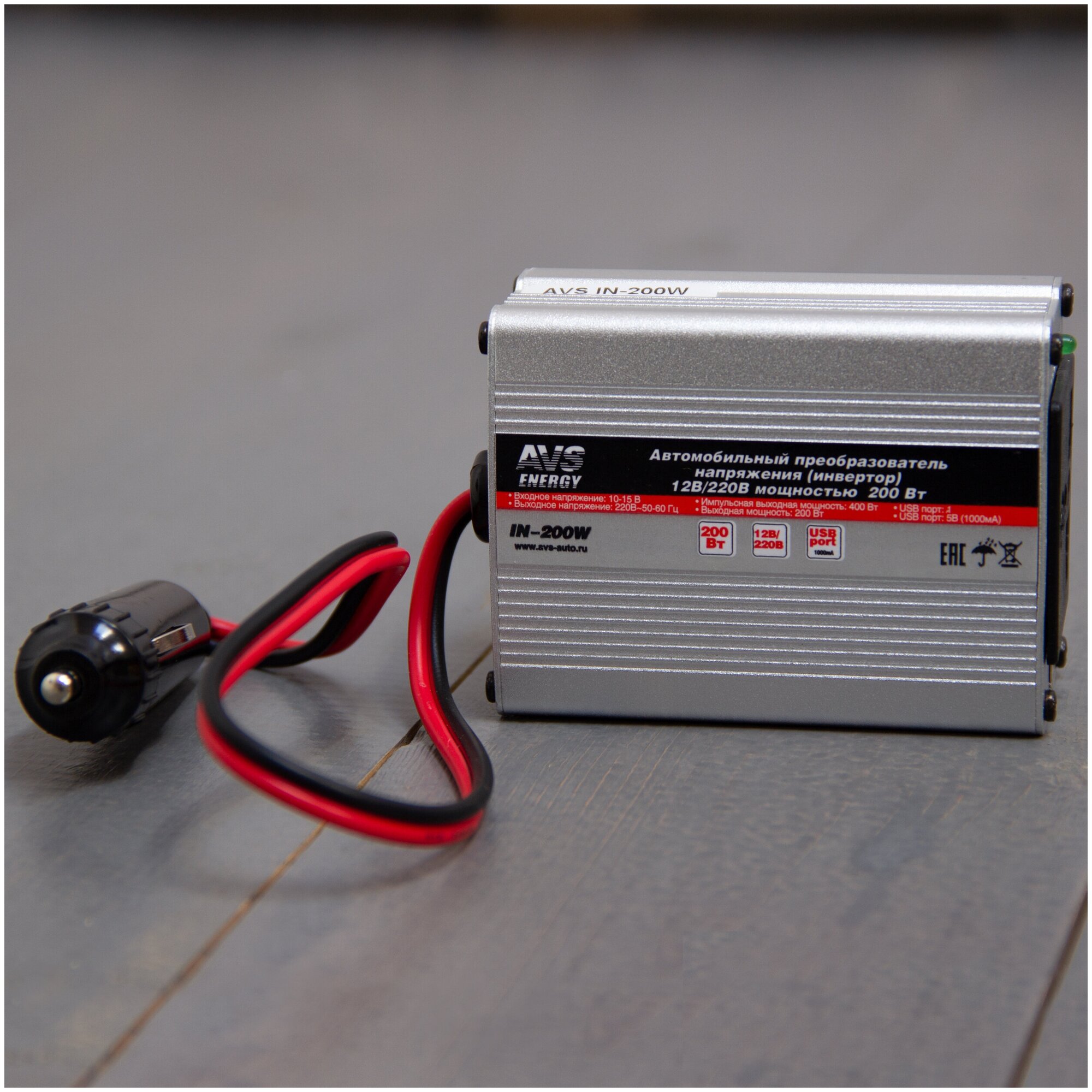 Преобразователь напряжения 12/220V, инвертор автомобильный AVS IN-200W, A80683S 2 970 ₽