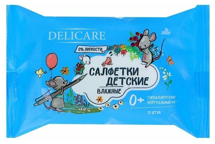 Влажные салфетки Delicare для детей Мышата 15 шт. информация: