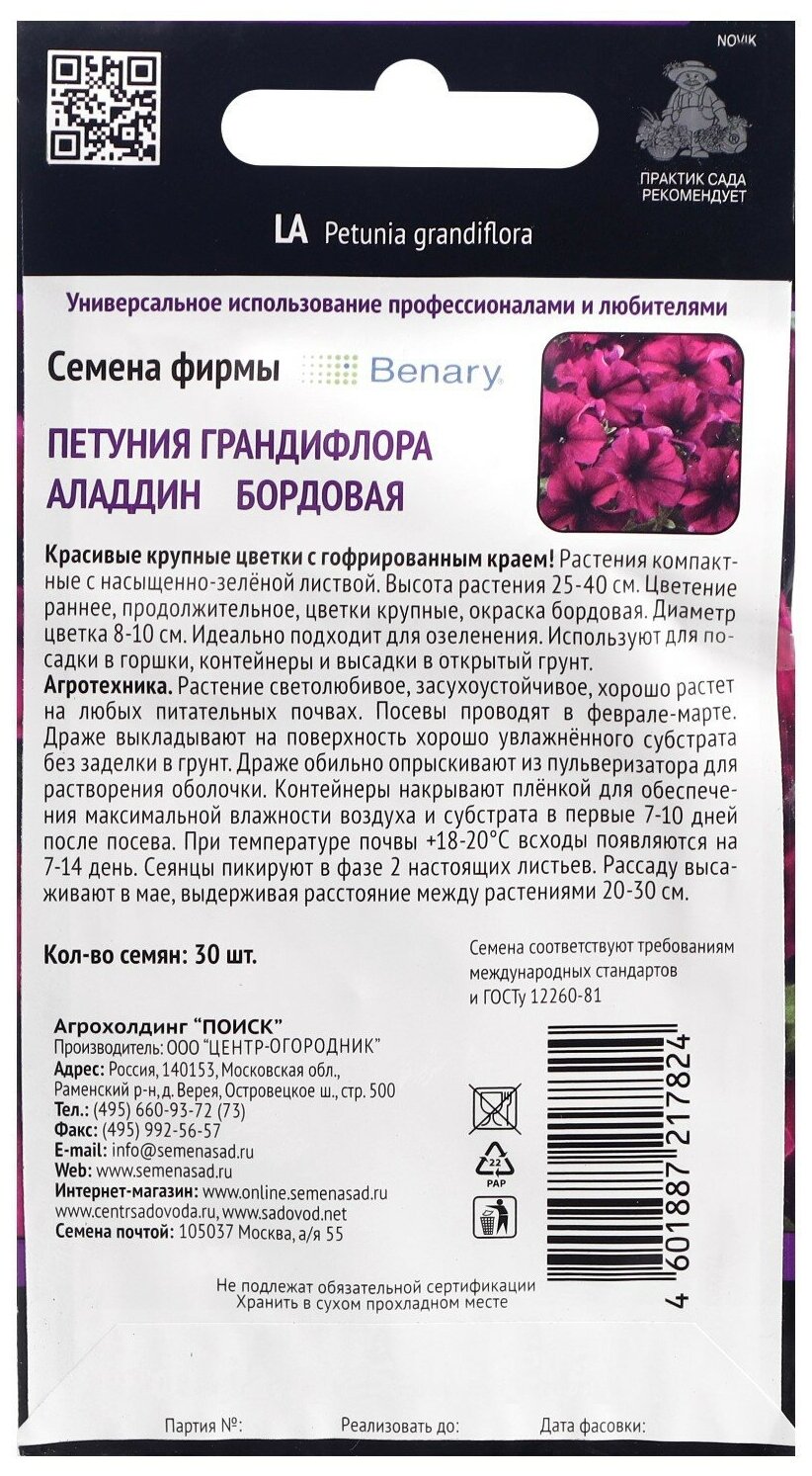 Семена цветов Петуния "Поиск", грандифлора "Аладдин Бордовая", 30 шт.