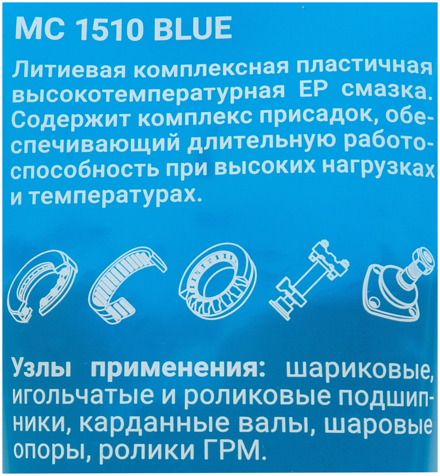 Смазка литиевая 200мл - MC 1510 BLUE: высокотемпературная для подшипников, зубчатых передач, шаровых опор,от-40С до+180С, кратковременно до+350С, NLGI 2, синяя, тюбик