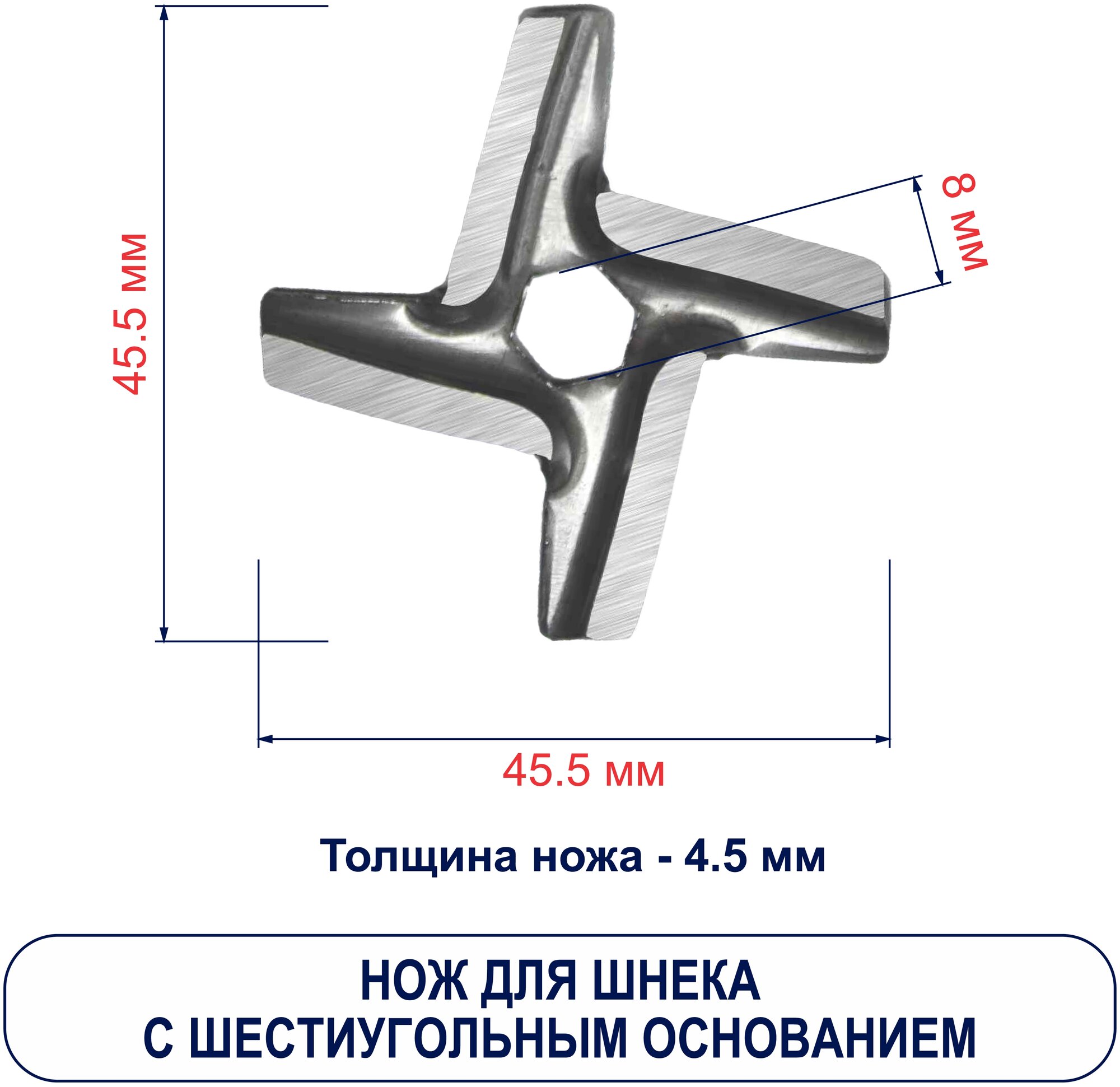 Нож для шнека мясорубки и комбайнов с шестиугольным основанием