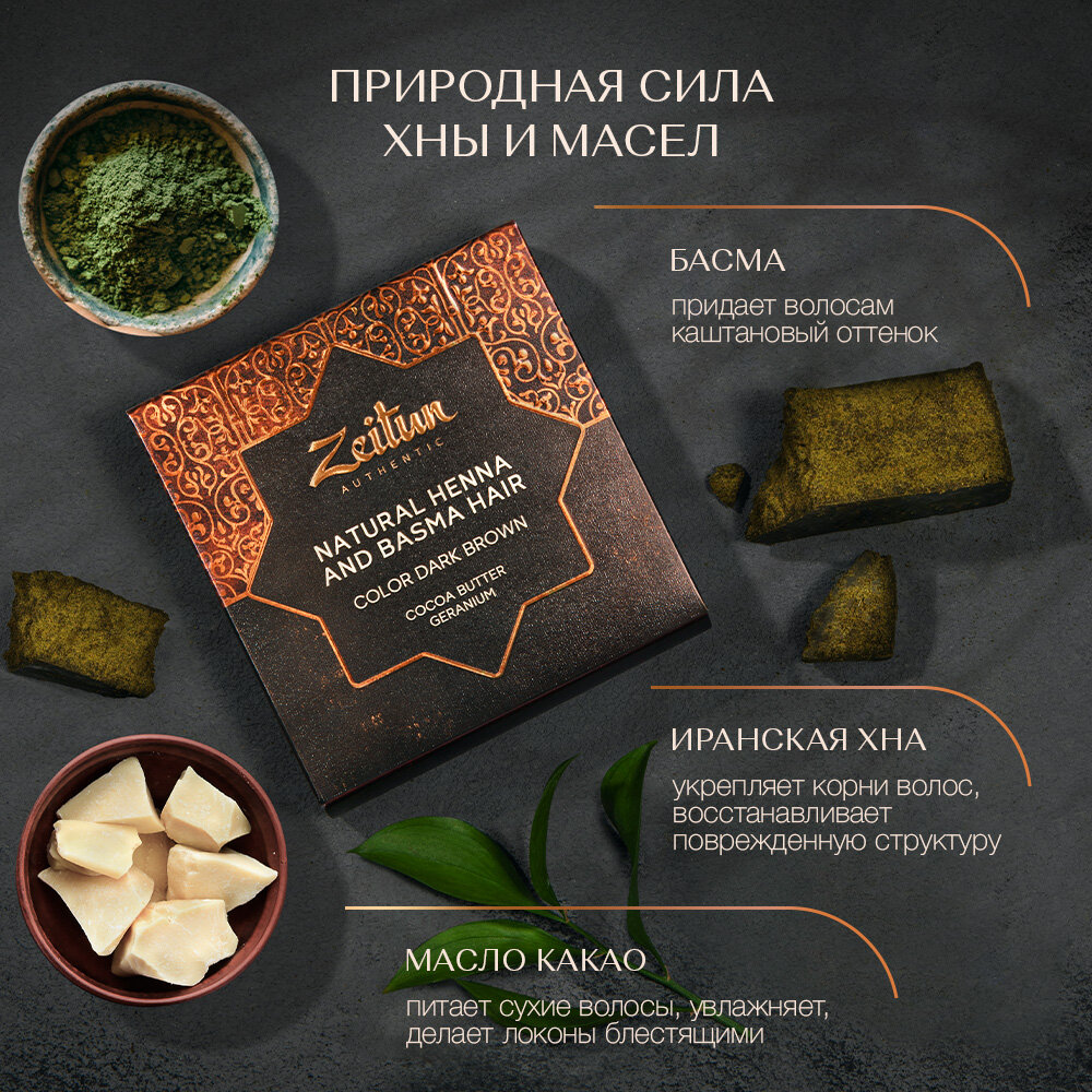 ZEITUN Хна для волос, натуральная краска для, укрепление и восстановление, для роста, с басмой, 300 г информация:
