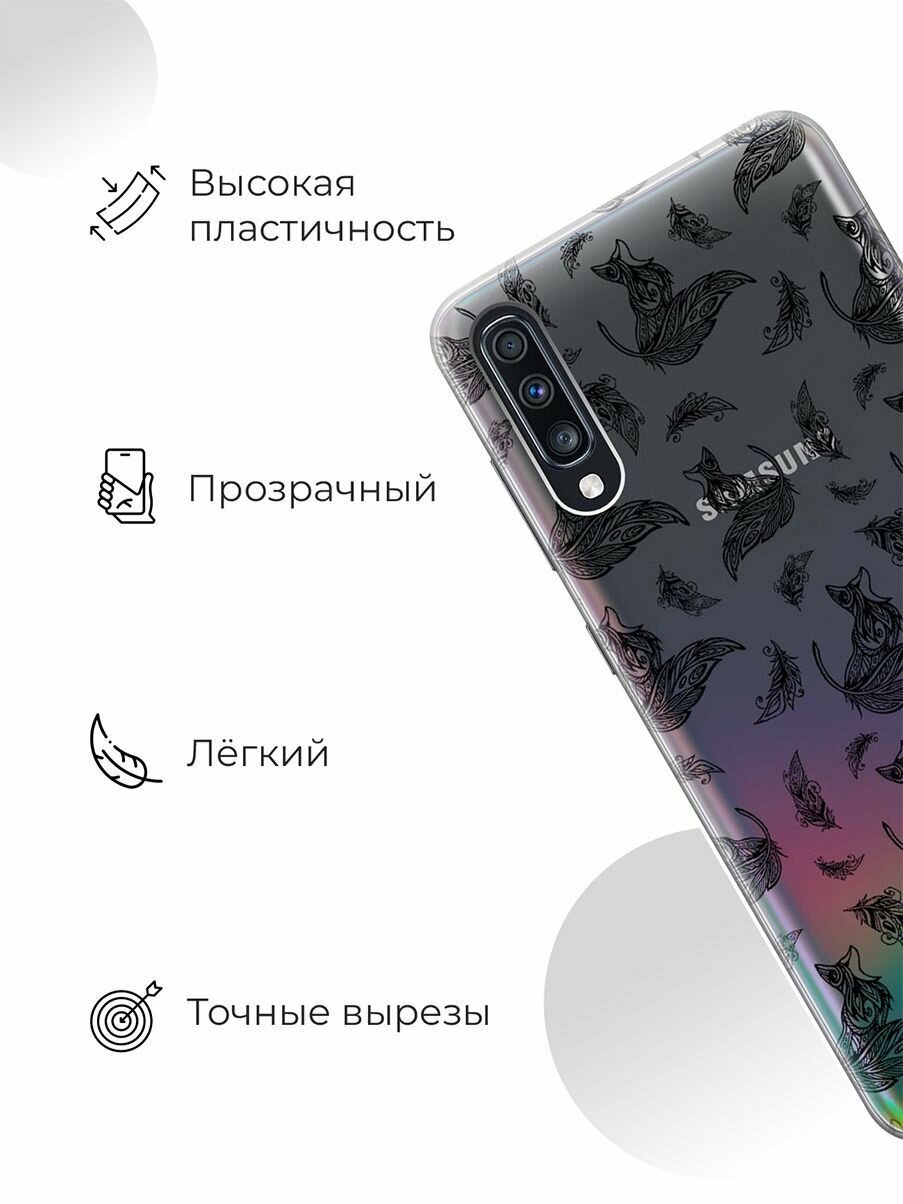 Чехол - накладка Transparent 3D для Samsung Galaxy A70 / A70s с принтом "Foxes and feathers" информация: