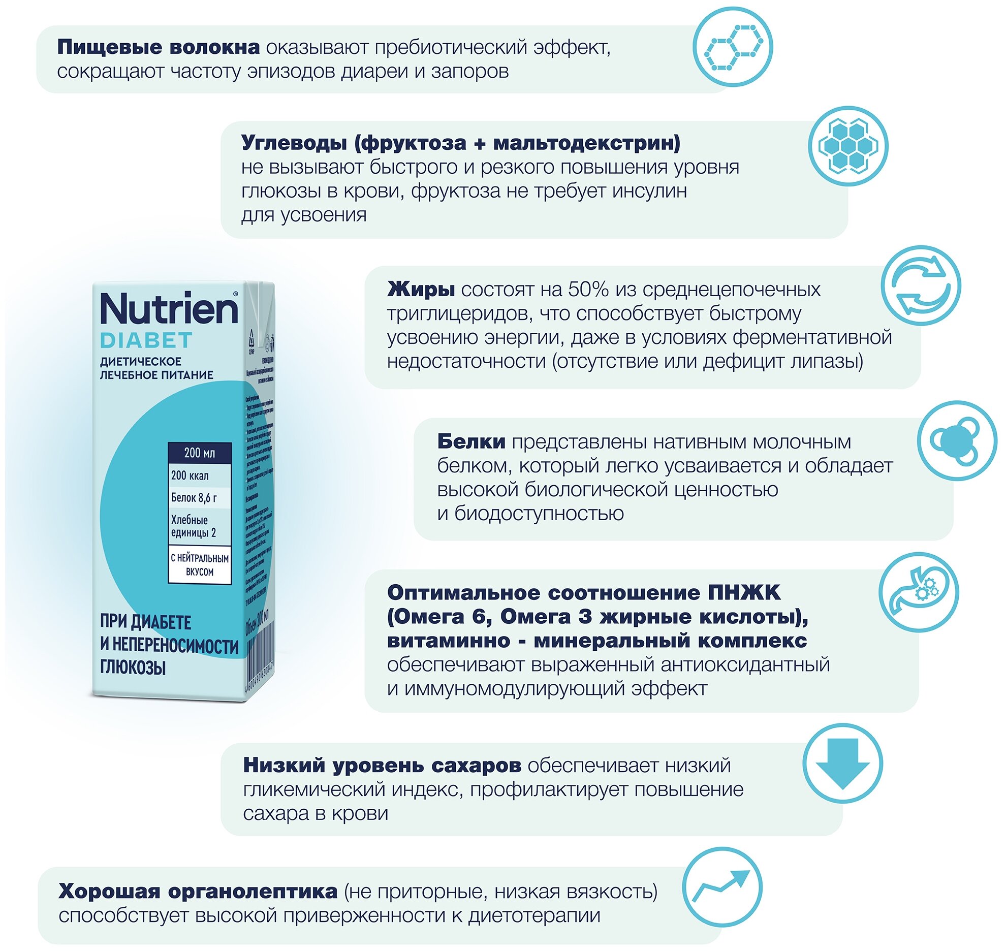 Nutrien Diabet (Нутриэн Диабет) с нейтральным вкусом, лечебное энтеральное питание, 200 мл